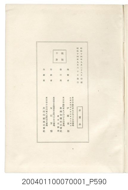 昭和14年9月30日發行