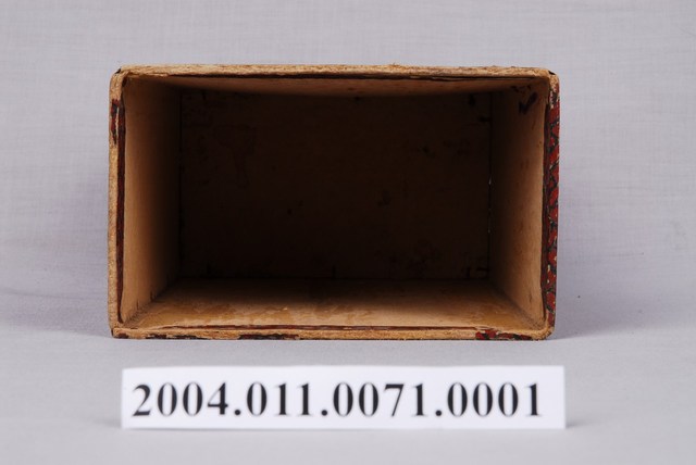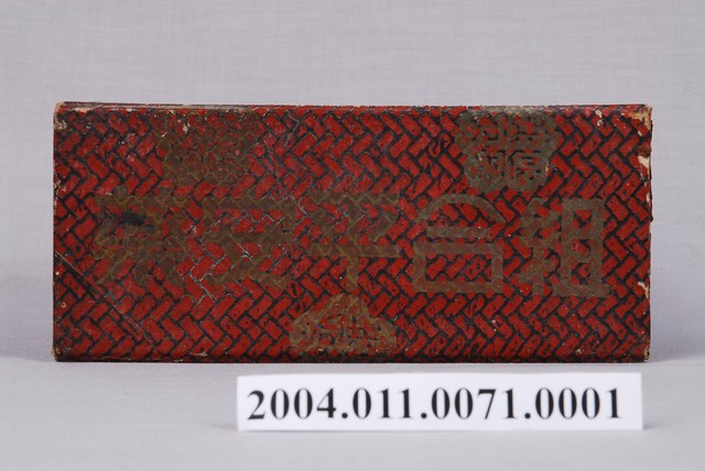 本文物為組合家庭平安藥盒之外盒,長方形外盒以黃色為底,其他面則為紅色格紋,紙盒上寫有「組合家庭平安藥、臺灣產業組合協會」等中英文字。而長邊側面寫上「產業組合、組合平安藥」,短邊側面則印有梅花形狀的圖案。外盒的表面多已斑駁,文字內容也模糊不清。