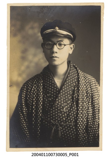 1.本物件為王育霖黑白照片,其頭戴帽子,穿著和服。此文物為王育霖就讀臺北高等學校文科時期所拍攝,王育霖自昭和12年(1937)3月於臺北高等學校尋常科畢業直升該校文科甲組。本文物紙質泛黃。
