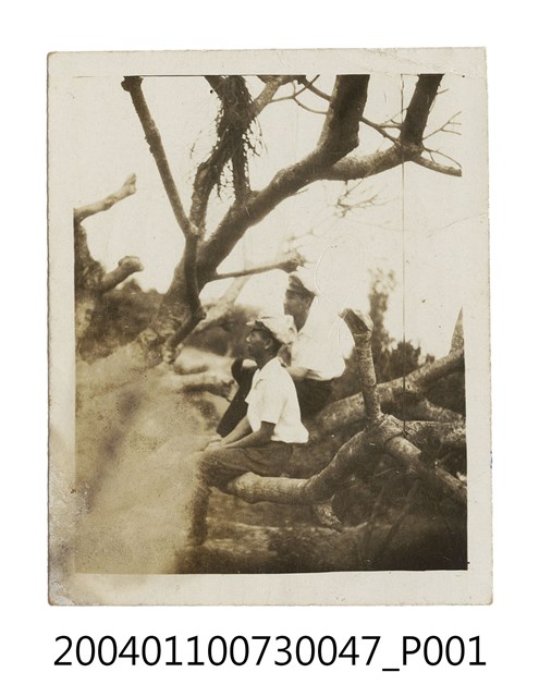 民國38年學生於阿里山樹上合照