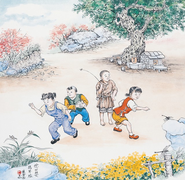 黃金田繪《捻田嬰草蜢》