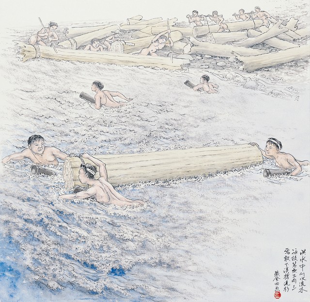 2004.019.0102 黃金田繪《洪水中的水流木》