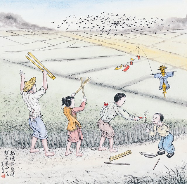 黃金田繪《稻穗含漿時 趕雀最合宜》