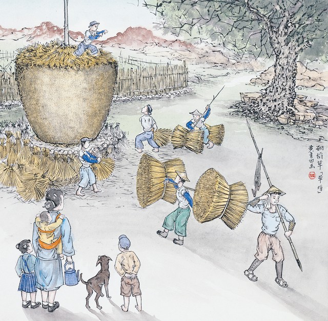 黃金田繪《砌稻草「草垺」》