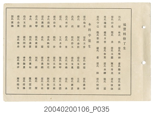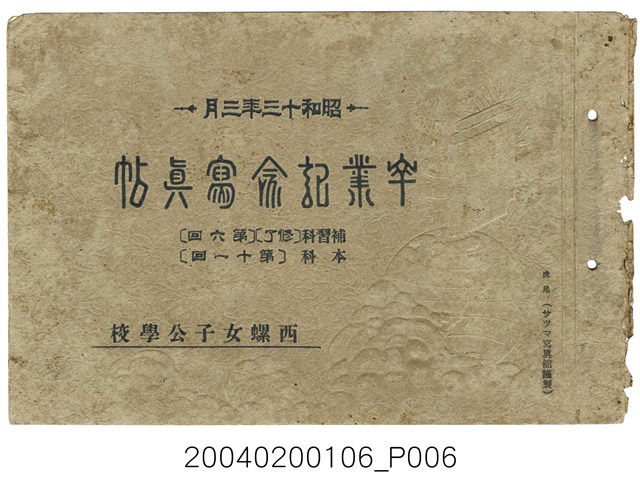 2004.020.0106 《西螺女子公學校第11屆本科生暨第6屆補習科生畢業紀念冊》