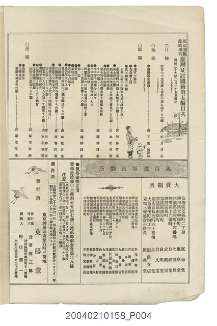 風俗画報臨時增刊臺灣征討圖繪明治廿九年二月廿五日第百九號東陽堂發行