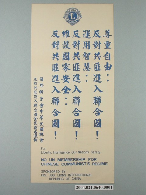 2004.021.0640.0001 「反對共匪進入聯合國全民簽名運動」海報