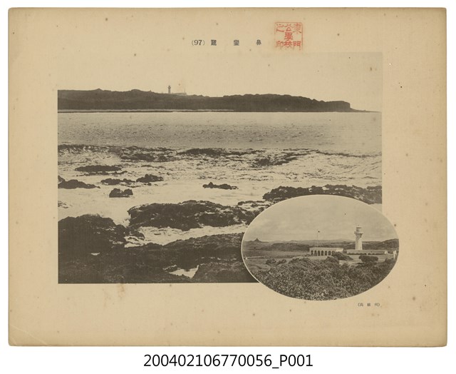 1. 本物件為以鵝鑾鼻為主題的日治時期黑白照片,照片題名「(97)鵞鑾鼻」,為一處燈塔景觀,右下角有一小字樣「(高雄州)」標示鵝鑾鼻燈塔之所在地,照片上有東門公學校之印。照片中遠景海岸上建於高處的鵝鑾鼻燈塔,其瀕臨太平洋、巴士海峽與呂宋島相對,近景為岩礁情景。下方照片中鵝鑾鼻燈塔的不同攝影角度,顯示其是建於人工築成的基座上,旁邊有圍牆,亦為周遭最高的建築物。2. 西元1927年,《臺灣日日新報》舉辦臺灣風景票選活動,選出「臺灣八景」,「鵝鑾鼻高臺」曾列其中。