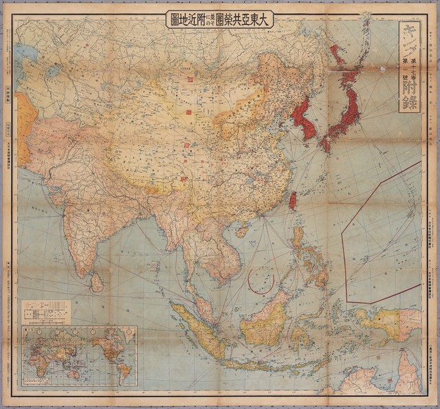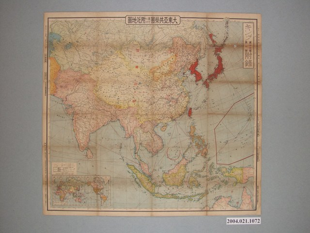 2004.021.1072 淵田忠良〈大東亞共榮圈並其附近地圖〉與〈歐洲美洲時局地圖〉