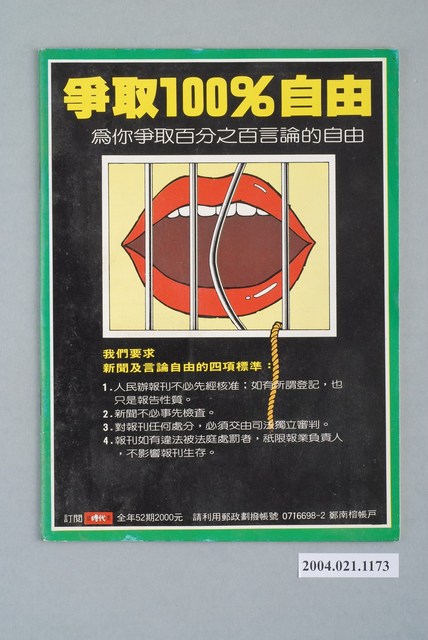 2004.021.1173 自由時代雜誌社出版《自由時代》週刊第19期