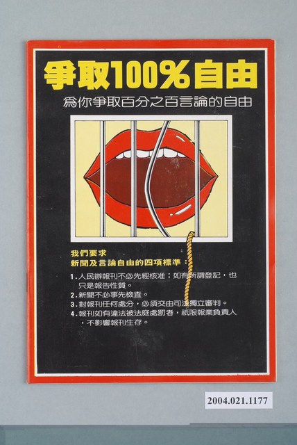 此為一紙質雜誌,此物件以照片為封面,並以白色字體標示物件之名稱,本物件為1986年8月發行之《開拓時代》週刊第3期(自由時代系列總號第131號),封面內容計有〈兩人的後事、兩岸的前途〉、〈「律師應該到勞裡來開業!」――土城探陳水扁、陳文輝、鄭南榕〉、〈捉放顏錦福〉、〈越洋報導:美國大審竹聯幫〉等。目錄計有(一)封面故事、(1)兩人的後事,兩岸的前途、(1.1)一切都因,蔣經國要下班了、(1.2)一切都因,鄧小平等不久了、(二)自由觀點、(1)割地、懲兇、賠款、(三)李敖出擊、(1)誰假託了魏廷朝的話?、(四)特別報導、(1)越洋報導:美國大審竹聯幫、(五)焦點新聞、(1)捉放顏錦福、(2)大概判我八個月吧――訪嚴錦福談捉放事件、(六)臺灣現象、(1)「律師應該到牢裡來開業!」――土城探陳水扁、陳文輝、鄭南榕、(2)又來一團革新秀戲班子、(3)貿易談判:老美得寸進尺,臺灣貪小失大、(4)卸下金鐘罩,穿上鐵布衫――國民黨真會解除戒嚴嗎?、(5)惹怒蔣經國,收押侯永松、(6)為團結而分手――編聯會退出選舉後援會、(七)中篇連載、(1)蔣介石是怎麼抗日的?➁、(八)台北風聲、(1)蕭天讚飛上枝頭,趙守博將變鳳凰、(2)立法院放暑假,委員去郊遊、(3)王品芳挨告,高育仁避風頭、(九)海外通訊、(1)臺灣國建會――臺灣公共政策研討會、(1.1)經濟奇蹟已失去光輝、(1.2)建立更美好的明天、(1.3)臺灣外匯是一顆不定時炸彈、(1.4)臺灣住民已擁有意識條件、(1.5)臺灣問題總歸是政治問題、(十)萬能記者阿吉仔、(1)中研院歡迎叛亂犯,警察局殺人用噴效、(十一)新聞眉批 等。 此物件為《自由時代》系列雜誌之一,《自由時代》是黨外政論雜誌之一,於1984年3月12日由鄭南榕所創辦,並且標榜「爭取百分之百的言論自由」,雜誌內容致力於追蹤黨國內幕、打破禁忌話題、評議時政,同時也籌劃街頭社會運動,如:「五一九綠色行動」,其中鄭南榕為保護幫《自由時代》雜誌撰寫文章的作者,於是在目錄標示鄭南榕承擔一切文章的責任,且不在雜誌目錄頁寫上作者姓名。最終在1989年11月11日,鄭南榕自焚身亡7個月後,《自由時代》停刊。所謂「黨外」為中國國民黨之外的政治勢力,「黨外」在國民黨政府的治下運用創辦雜誌的方式表達立場、對抗國民黨政府,這些雜誌、出版品被稱為「黨外雜誌」,《自由時代》亦是其中之一。