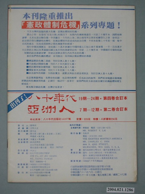 2004.021.1286 八十年代雜誌社發行《八十年代》第28號
