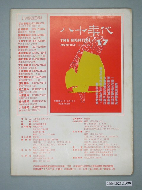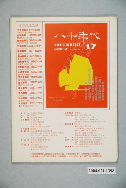 2004.021.1398 亞洲人雜誌社發行《亞洲人》月刊第2卷第2期總號第8號