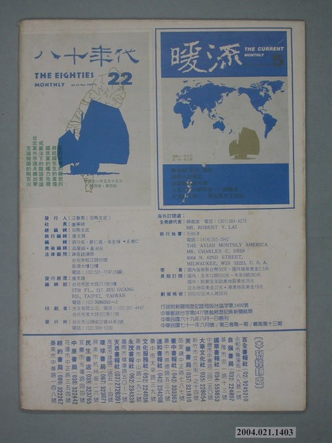 2004.021.1403 亞洲人雜誌社發行《亞洲人》月刊第3卷第1期總號第13號
