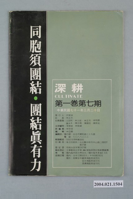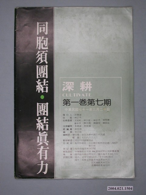 2004.021.1504 深耕雜誌社出版《深耕》半月刊第1卷第7期