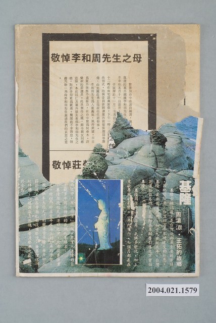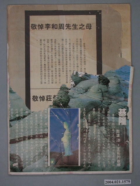 此為一紙質雜誌,在封面上方寫有本書標題、期號以及出版日期,並在封面刊有李登輝等人以及撲克牌的插圖,另外節錄本刊物的部份內容,背面則刊有介紹基隆並提及周滄淵與王拓的文宣,但嚴重破損。此書為臺灣年代雜誌社1984年出版的《臺灣潮流》週刊第15號。 此件為《深耕》雜誌的衍生刊物之一,其最重要的發行人為許榮淑。《深耕》相較其他同時期的雜誌更富有批判性,亦更受社會矚目,其批判對象並不僅限於國民黨,連當時的黨外勢力也同時受其針砭。代表案例是其在1982年「杯葛事件」中針對「黨外主流派」妥協立場的批判。《深耕》成為黨外運動路線改變的原因之一,另外也造成黨外勢力的對立。 「黨外」一詞主要為非中國國民黨的臺灣政治勢力,而「黨外」政治勢力,主要的宣傳方式為「黨外雜誌」,「黨外雜誌」最早如1950年代的《自由中國》、1970年代的《大學》、《臺灣政論》,後在1980年代「黨外雜誌」發展蓬勃,代表刊物為《八十年代》與《美麗島》,最終,這股媒體趨勢在1986年民進黨成立、1987年解除戒嚴之後逐漸式微。「黨外雜誌」在當時激起了臺灣民眾的民主意識,也逐步促成了言論自由開放。(蕭淑玲,2006,153-155)。