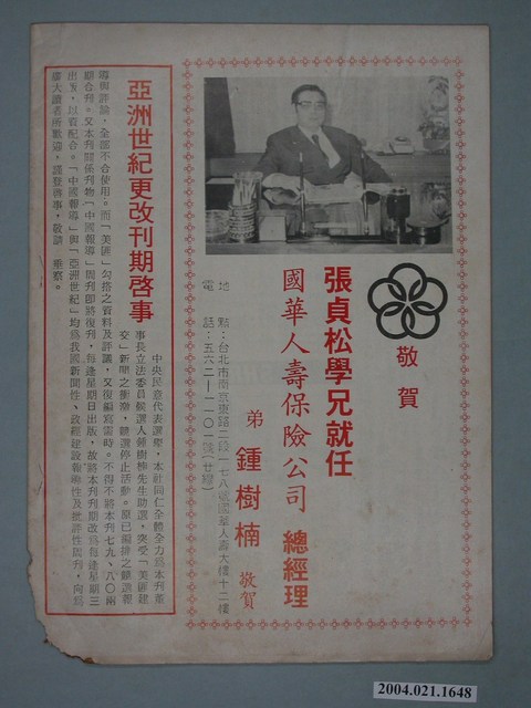 此為一紙質雜誌,此書為亞洲世紀雜誌社於1979年(民國68年)發行的《亞洲世紀週刊》第79、80號。內容為1978年12月27日至1979年1月2日間的相關事件。 此《亞洲世紀》雜誌由許介生、戴虹羽、鄒重光、張仰成等人創辦,雜誌內容多為時事評論及政治評論,並輔有文學、電影、時尚相關的內容。並在政治立場上偏向中立立場,雖基本擁戴國民黨,但是也刊載稱讚黨外人士的評論。 在1970年代至1980年代初的臺灣雜誌,由於外交危機的影響,相較於支持政府的主流政論雜誌之外,尋求改革的雜誌於是出現,其一是後來尋求黨內改革的《大學雜誌》,其二是醞釀黨外民主運動的《臺灣政論》。另外大型報社如《中國時報》、《聯合報》都挹注的雄厚資金,以《時報雜誌》、《中國論壇》投入雜誌出版的行列。文藝雜誌方面則有《夏潮》雜誌爆發「臺灣鄉土文學論戰」,並有數份以專業文學批評為主的雜誌創刊,如:《中外文學》、《文學季刊》等。另外社區雜誌以及婦女雜誌也在此時期發展起來。