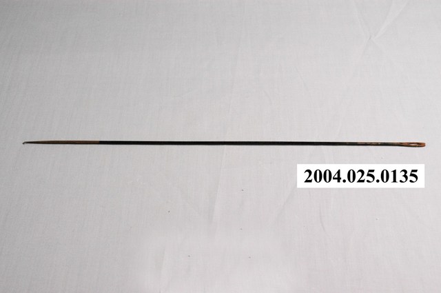 本物件為鐵製細長針,長針針孔較細長,通常用於手工編織、刺繡,其堅韌度亦較短針為佳。