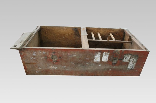 1.本藏品睡櫃主體的脫落右側支架,長55.5公分、寬13.7公分,高3.4公分,原本以鐵釘與榫頭固定於睡櫃主體右側,用以支撐上方床板,現已脫落,榫頭與鐵釘等痕跡依舊清晰可見。整體而言無裝飾,是著重實用的部件。