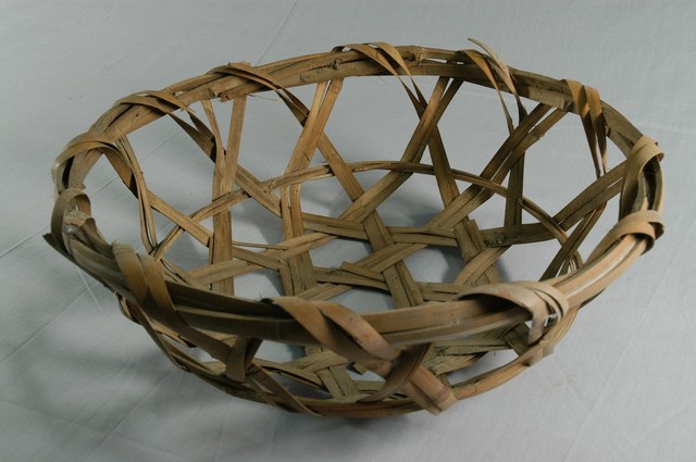 1.本物件為秧籃,為竹篾編成,形狀如臉盆,有污漬、灰塵。秧籃通常兩兩一組。 2.秧籃又稱「秧篦」,以竹片、篾編成,製作方法為以粗竹片1-2片圍成圓框,再以竹篾交叉編製。使用方式為農人以鏟子鏟起秧塊以便移植,疊放於秧籃上,插秧時則將秧籃置於秧船上。
