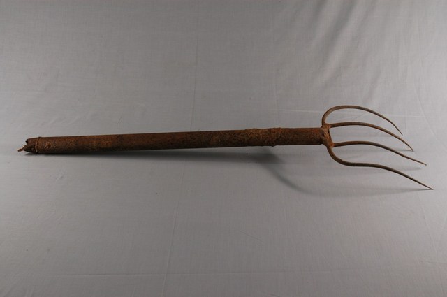 本文物為四齒叉,為鏟草的農具,為戰後由歐美傳入的園藝工具。齒細長呈彎曲面,適合伸入草隙間將草鏟起。齒後端接空心鐵柄。根據購藏來源資料,本件文物來自花蓮。