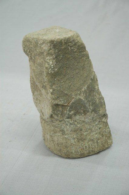 為石門臼組之一,共二件,形式相同,應為同一對雙開門之門臼。門臼為門的構件,圓形孔洞用以插入門扇的門軸。本件門臼為下門臼,置於門豎後方。底部插入地面。與門豎貼合及地面以下的石材表面未磨光,外露三側面磨光並做圓角。根據典藏來源資料,本組文物收集來源地在屏東。