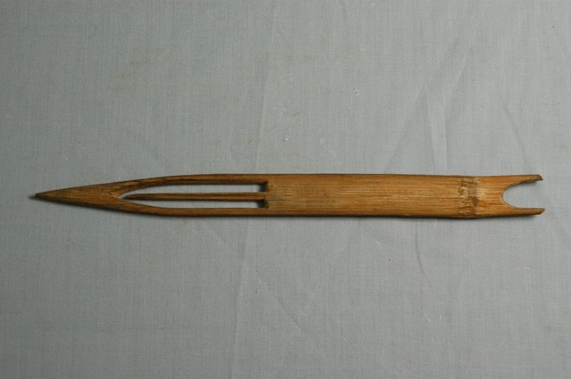 本物件為竹製漁網結網器,結網器為梭狀,除結網外亦作為修補漁網之用途,其材質有竹、木、鐵、銅、塑料,竹製為較常見,可略分為大號(約20-50cm,用來封漁網及修補粗線網)、小號(10cm以下,主要用來修補漁網)及介於其中的中號,中號由於大小適中,主要用來織各種漁網,結網器為織漁網的重要工具。