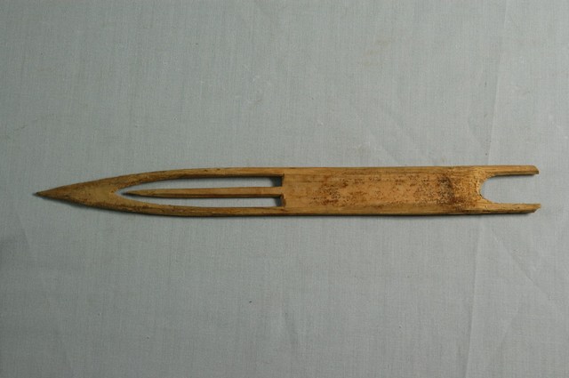 本物件為竹製漁網結網器,結網器為梭狀,除結網外亦作為修補漁網之用途,其材質有竹、木、鐵、銅、塑料,竹製為較常見,可略分為大號(約20-50cm,用來封漁網及修補粗線網)、小號(10cm以下,主要用來修補漁網)及介於其中的中號,中號由於大小適中,主要用來織各種漁網,結網器為織漁網的重要工具。