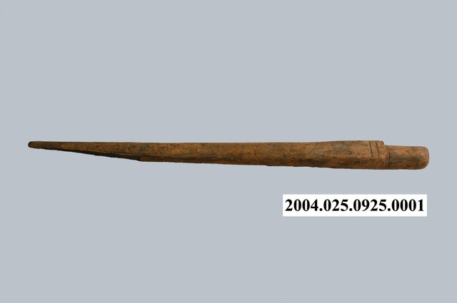 本物件為鐵皮四輪牛車的木棍,材質為木頭,形狀一端較細一端較粗。