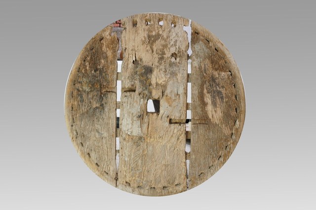 1. 本物件為拼板輪,木製,為三塊木板,中間以卡榫方式拼接而成。本物件是清末至日治初期臺灣常用的樣式。但隨著物件本身的使用生命,有可能在不同時代被維修、替換,因此,無法推測確切製造時間。