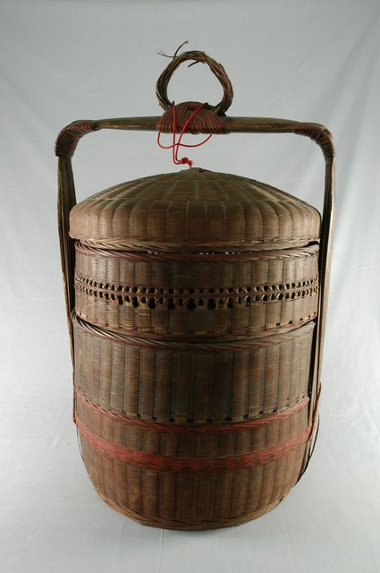 本文物為禮籃,由竹片編織而成,圓形形狀,共分為三層,提把上使用竹片纏繞,手提時更為穩固,並印製「大正拾年貳月置、海豊庄順發商店」等文字,在禮籃表面有多處污漬與剝落。用途為當時女性用來裝放供品、食品。