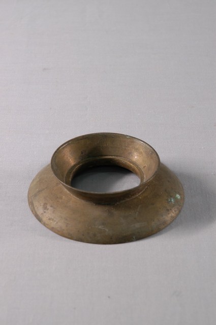 本件為銅質底座,底座圓形,用來承接供杯,觸地面積大於供杯杯體以利穩固。供杯用來奉祀神明或祖先,裝盛美酒或清水的供具,表達虔誠之敬意。