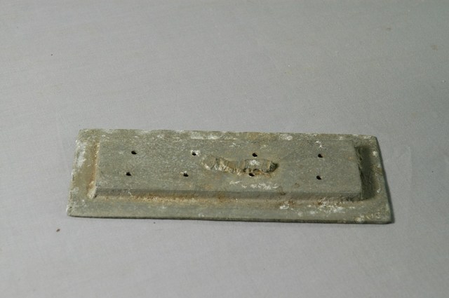 薦盒又稱敬盒、薦臺、奉案或「順盒仔」,為盛放供品的用具承臺,一般用來放置酒杯和水杯,以供奉神明。薦盒多以木器、漆器,陶瓷或錫等材質製成,其中以木製品為主,且多有精緻的雕刻。本件為籤薦盒上蓋,沿蓋緣做成凹槽,凹槽內有八個孔洞。