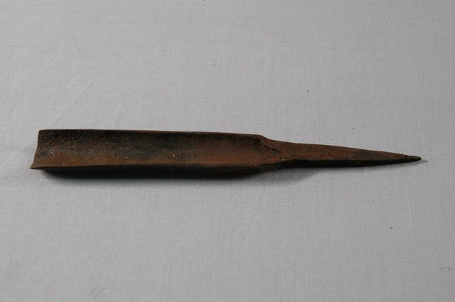 鑿刀為木工工具。在建築匠師的工別上,大木、鑿花都會用到鑿刀,家具匠師也會使用。竹工亦使用鑿刀。通常與鎚配合作業。鑿刀通常由刀片、刀柄、鐵環三種構件組成。本件僅有刀片部分。依刀口形狀不同,分為圓口與平口兩類,本件為圓口鑿刀。根據購藏來源資料,本件工具來自屏東。