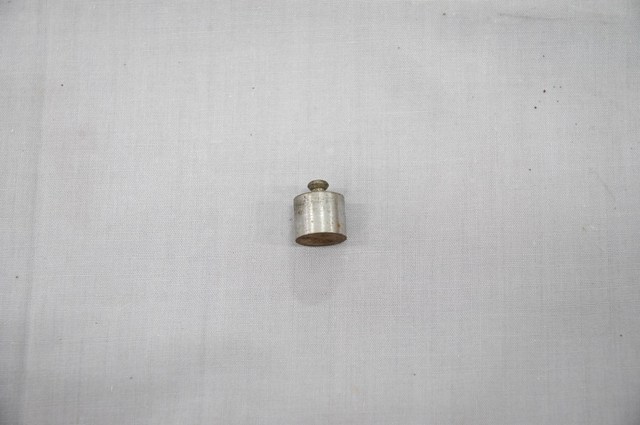 1.本物件為秤重設備,天平秤專用之砝碼。圓柱狀,上方有一突點,方便使用夾子夾取。本物件為金屬製品,砝碼上面有刻「10g」字樣,整個物件皆有生鏽。
