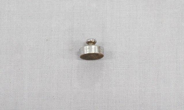 1.本物件為秤重設備,天平秤專用之砝碼。圓柱扁狀,上方有一突點,方便使用夾子夾取。本物件為金屬製品,砝碼上面有刻「3g」字樣,圓柱身與上方皆有生鏽。
