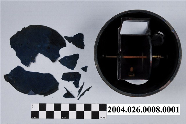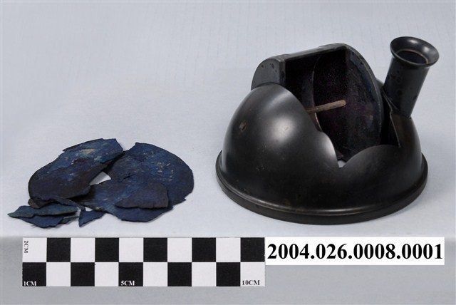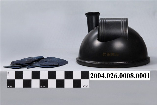 本物件為筆座。筆座為黑色,塑膠製品。筆座底座為半圓型,內部有一橫桿,外部有筆插孔。筆座底座印有武田製藥字樣。