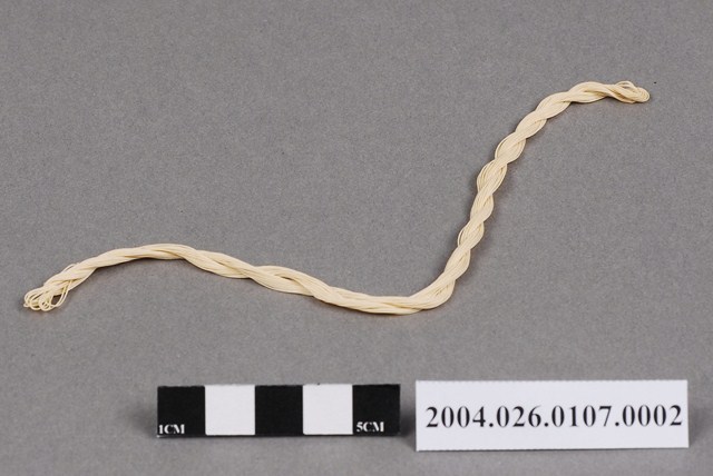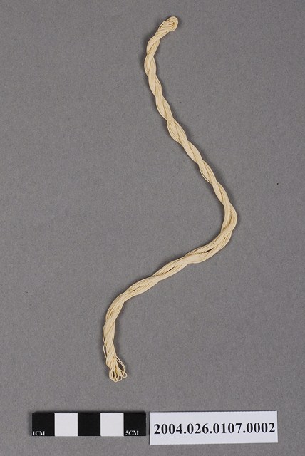本物件為高級縫合絹絲一束。絹絲為米白色。絹絲收攏一起,順著同一方向旋轉成束。