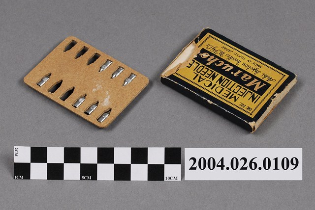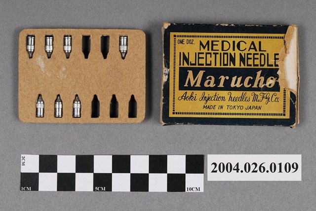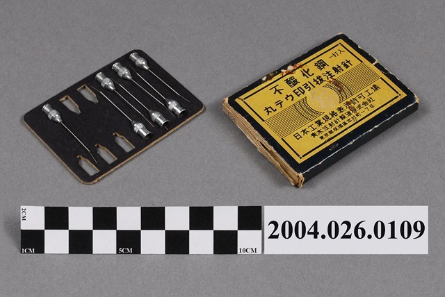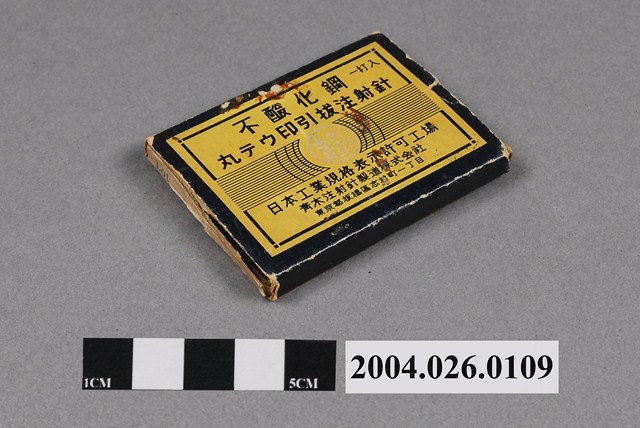 本物件為醫藥注射針盒。共有2個物品,分別為醫藥注射針外盒與醫藥注射針。