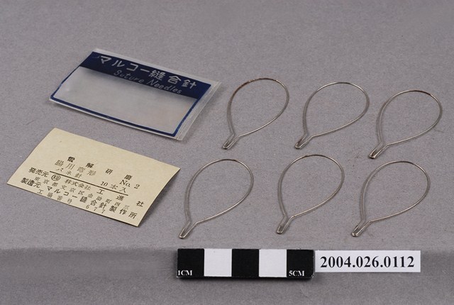 本物件為縫合針。共有2種物品,分別為縫合針外包裝盒和縫合針。