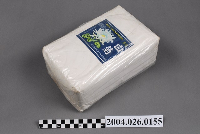 2.本產品標有內衛成製字第3949號,應為西元1949-1971年許可字號的產物,在衛生福利部食品藥物管理署查無此字號的藥品資料。另有查到衛署醫器製壹字第000299號之藥品,品名為白菊牌脫脂紗布,亦為臺灣棉業股份有限公司申請,應為重新申請字號之產品。