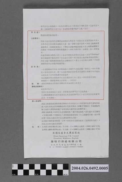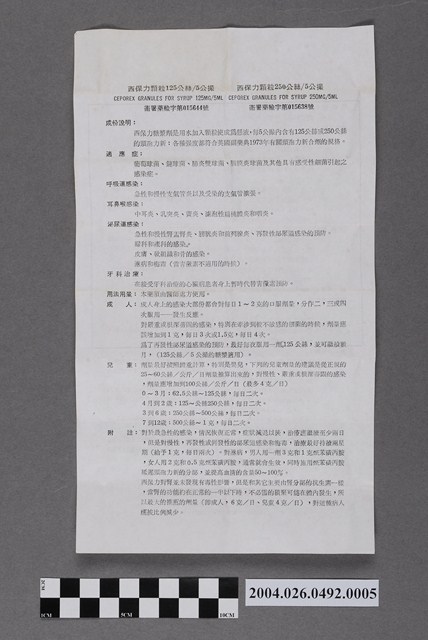 2004.026.0492.0005 英國葛蘭素製「Ceporex」糖漿劑中文說明書