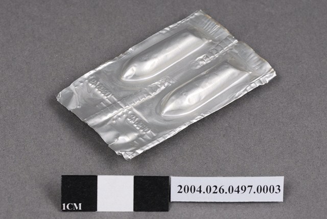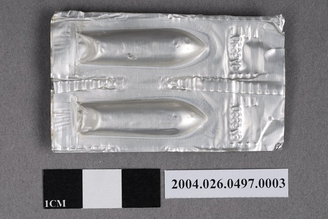 本物件為德國HOMBURG製Selvigon兒童用栓劑。一排有5個栓劑。外包裝為銀色,不透明,一個包裝內有一個栓劑。外包裝上印有Selvigon、kinder、Children、Enfants等字樣。