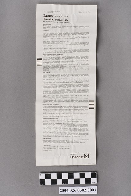 2004.026.0502.0003 德國赫斯特製「Lasix retard 30」說明書