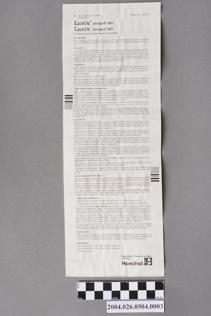 2004.026.0504.0003 德國赫斯特製「Lasix retard 30」說明書