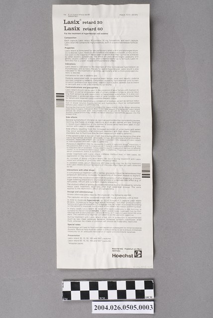 2004.026.0505.0003 德國赫斯特製「Lasix retard 30」說明書