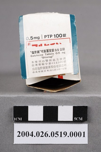 2004.026.0519.0001 鹽野義製藥株式會社出品秋水仙鹼錠包裝紙盒