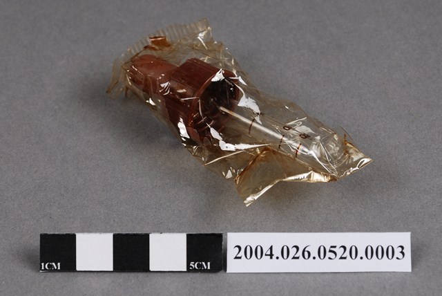 本物件為鹽野義製藥株式會社製造自律神經安定劑ウインタミンシロップ滴管。滴管分成兩部分,吸頭為紅色,吸管為透明無色的管狀物,上面有1.0、0.5、0.25的數字。滴管裝在塑膠袋內。