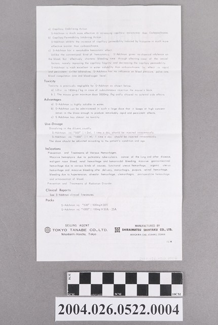 2004.026.0522.0004 白井松新藥株式會社製造「S.アドクノン」注射液說明書