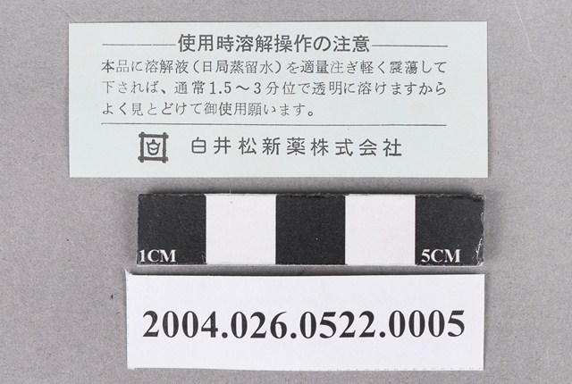 2004.026.0522.0005 白井松新藥株式會社製造「S.アドクノン」注射液溶解操作注意事項